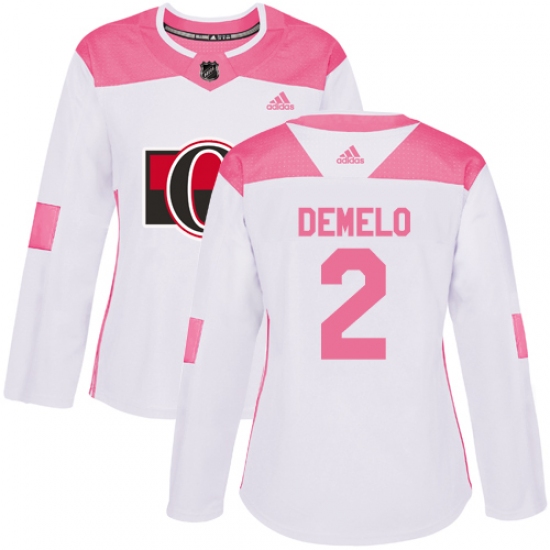 Women's Adidas Ottawa Senators #2 Dylan DeMelo Authentic White Pink Fashion NHL Jersey