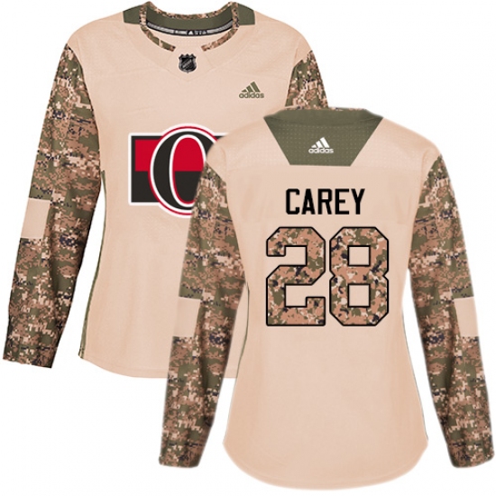 Women's Adidas Ottawa Senators #28 Paul Carey Authentic Camo Veterans Day Practice NHL Jersey