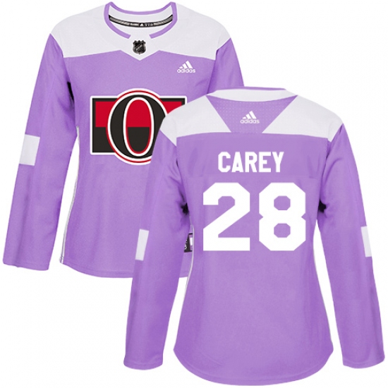 Women's Adidas Ottawa Senators #28 Paul Carey Authentic Purple Fights Cancer Practice NHL Jersey