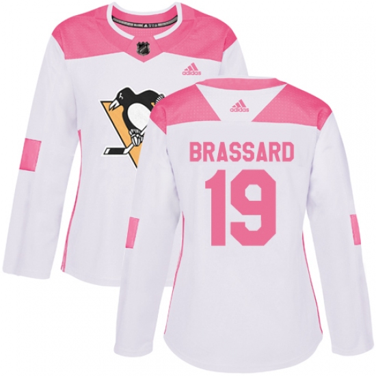 Women's Adidas Pittsburgh Penguins #19 Derick Brassard Authentic White Pink Fashion NHL Jersey