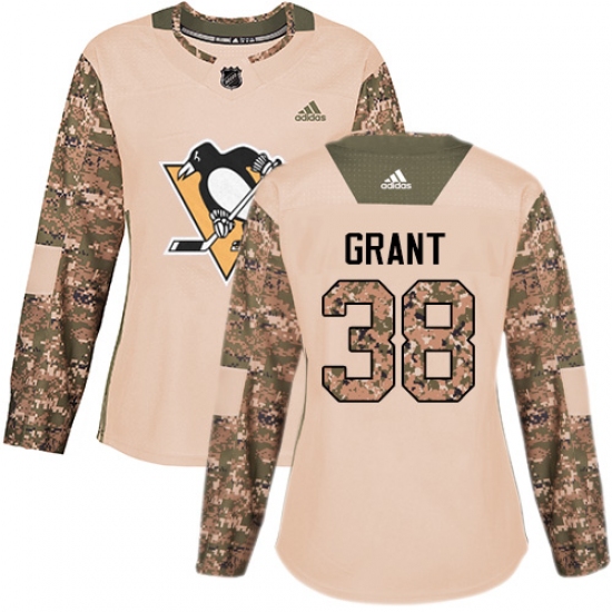 >Women's Adidas Pittsburgh Penguins #38 Derek Grant Authentic Camo Veterans Day Practice NHL Jersey