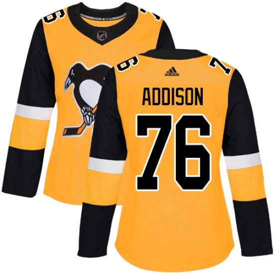 Women's Adidas Pittsburgh Penguins #76 Calen Addison Authentic Gold Alternate NHL Jersey