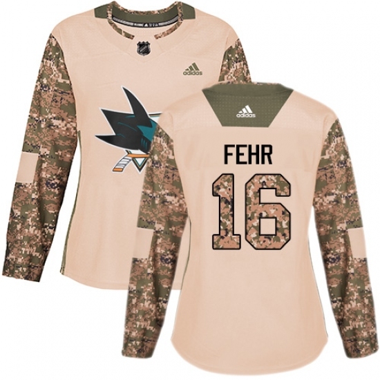 Women's Adidas San Jose Sharks #16 Eric Fehr Authentic Camo Veterans Day Practice NHL Jersey