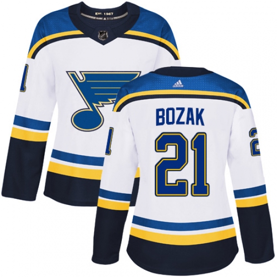 Women's Adidas St. Louis Blues #21 Tyler Bozak Authentic White Away NHL Jersey