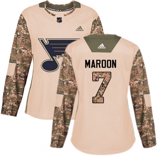 Women's Adidas St. Louis Blues #7 Patrick Maroon Authentic Camo Veterans Day Practice NHL Jersey