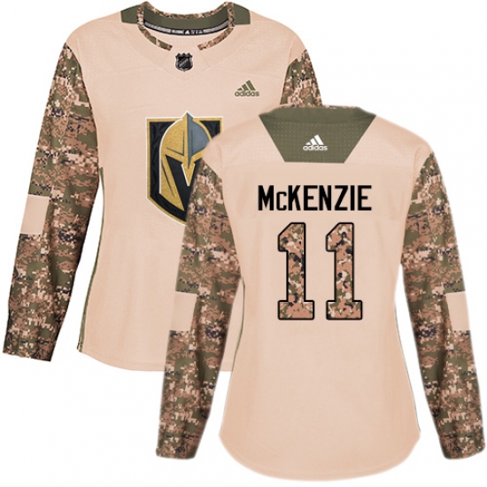 >Women's Adidas Vegas Golden Knights #11 Curtis McKenzie Authentic Camo Veterans Day Practice NHL Jersey