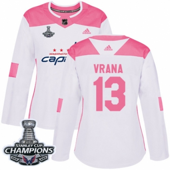 Women's Adidas Washington Capitals #13 Jakub Vrana Authentic White Pink Fashion 2018 Stanley Cup Final Champions NHL Jersey