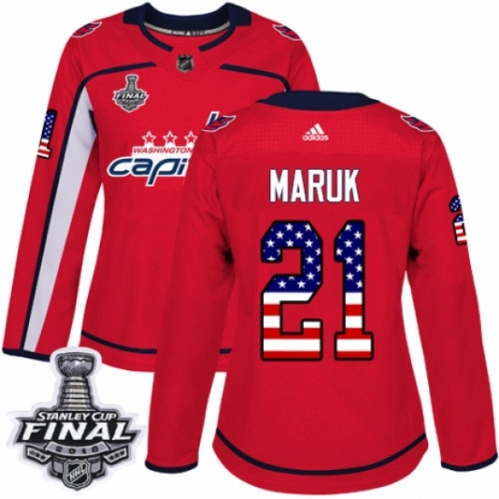 Women's Adidas Washington Capitals #21 Dennis Maruk Authentic Red USA Flag Fashion 2018 Stanley Cup Final NHL Jersey