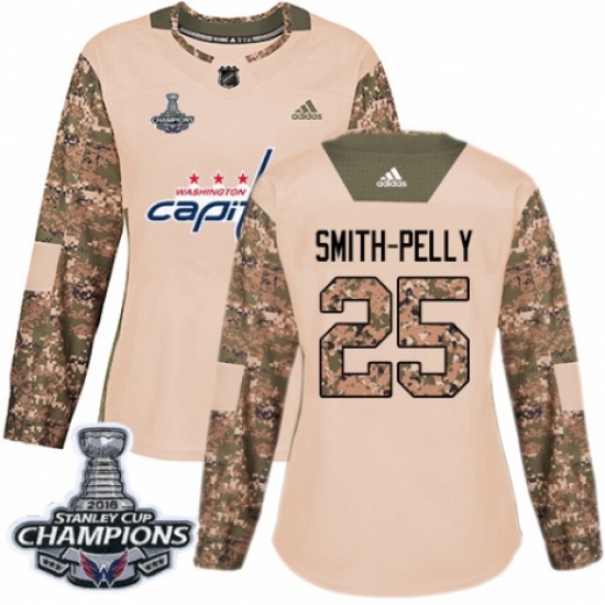 Women's Adidas Washington Capitals #25 Devante Smith-Pelly Authentic Camo Veterans Day Practice 2018 Stanley Cup Final Champions NHL Jersey