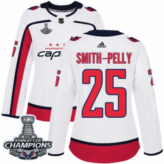 >Women's Adidas Washington Capitals #25 Devante Smith-Pelly Authentic White Away 2018 Stanley Cup Final Champions NHL Jersey