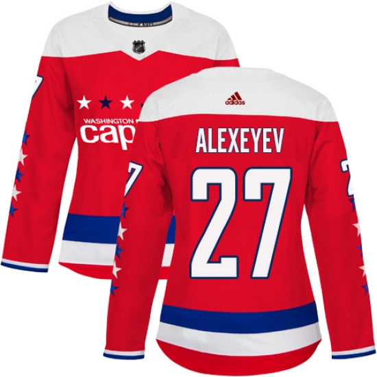 Women's Adidas Washington Capitals #27 Alexander Alexeyev Authentic Red Alternate NHL Jersey