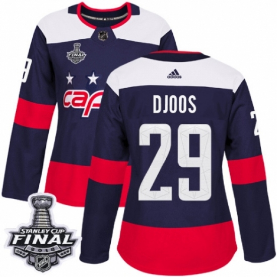 >Women's Adidas Washington Capitals #29 Christian Djoos Authentic Navy Blue 2018 Stadium Series 2018 Stanley Cup Final NHL Jersey