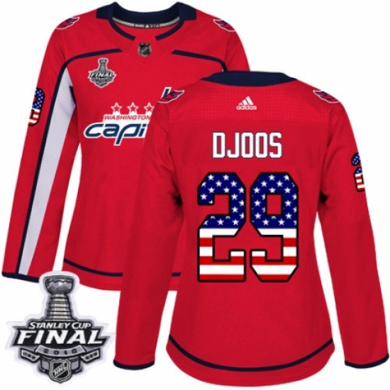 Women's Adidas Washington Capitals #29 Christian Djoos Authentic Red USA Flag Fashion 2018 Stanley Cup Final NHL Jersey