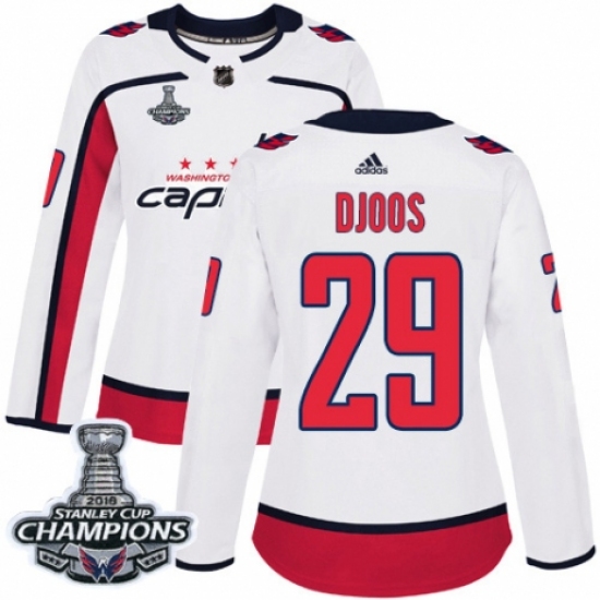 Women's Adidas Washington Capitals #29 Christian Djoos Authentic White Away 2018 Stanley Cup Final Champions NHL Jersey