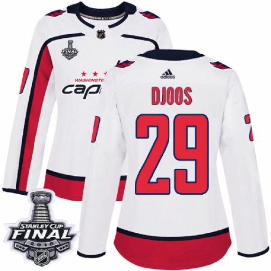 Women's Adidas Washington Capitals #29 Christian Djoos Authentic White Away 2018 Stanley Cup Final NHL Jersey