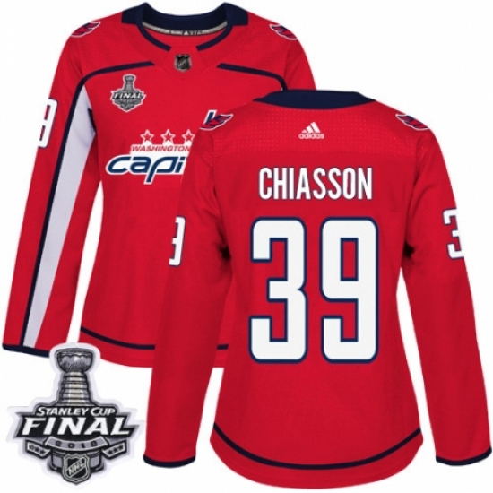 Women's Adidas Washington Capitals #39 Alex Chiasson Authentic Red Home 2018 Stanley Cup Final NHL Jersey
