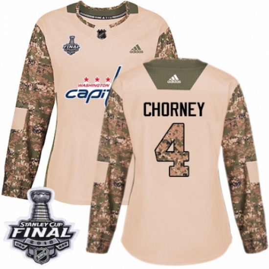 Women's Adidas Washington Capitals #4 Taylor Chorney Authentic Camo Veterans Day Practice 2018 Stanley Cup Final NHL Jersey