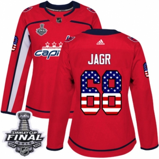 Women's Adidas Washington Capitals #68 Jaromir Jagr Authentic Red USA Flag Fashion 2018 Stanley Cup Final NHL Jersey
