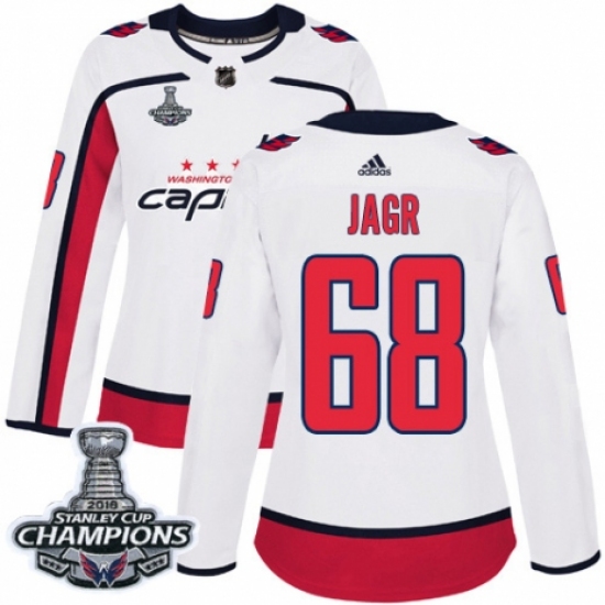 Women's Adidas Washington Capitals #68 Jaromir Jagr Authentic White Away 2018 Stanley Cup Final Champions NHL Jersey