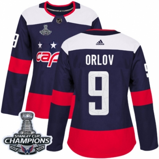 >Women's Adidas Washington Capitals #9 Dmitry Orlov Authentic Navy Blue 2018 Stadium Series 2018 Stanley Cup Final Champions NHL Jersey