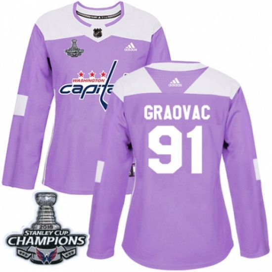 Women's Adidas Washington Capitals #91 Tyler Graovac Authentic Purple Fights Cancer Practice 2018 Stanley Cup Final Champions NHL Jersey