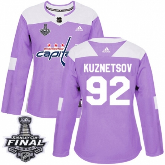 Women's Adidas Washington Capitals #92 Evgeny Kuznetsov Authentic Purple Fights Cancer Practice 2018 Stanley Cup Final NHL Jersey