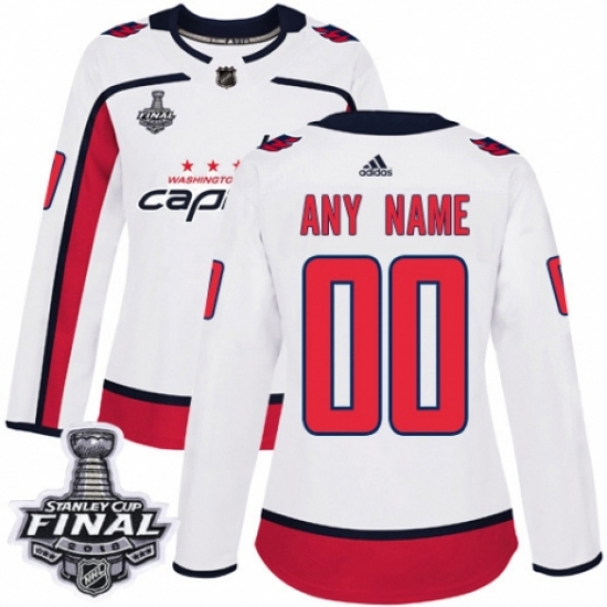 Women's Adidas Washington Capitals Customized Authentic White Away 2018 Stanley Cup Final NHL Jersey