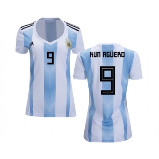 >Women's Argentina #9 Kun Aguero Home Soccer Country Jersey