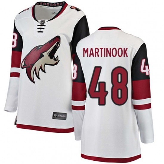 Home>NHL>Arizona Coyotes>Jordan Martinook>Women's Arizona Coyotes #48 Jordan Martinook Authentic White Away Fanatics Branded Breakaway NHL Jersey