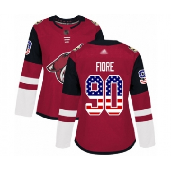>Women's Arizona Coyotes #90 Giovanni Fiore Authentic Red USA Flag Fashion Hockey Jersey