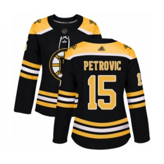 >Women's Boston Bruins #15 Alex Petrovic Authentic Black Home Hockey Jersey