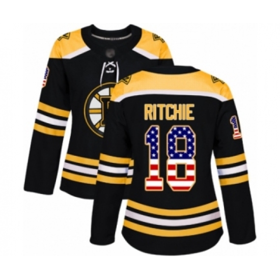 >Women's Boston Bruins #18 Brett Ritchie Authentic Black USA Flag Fashion Hockey Jersey