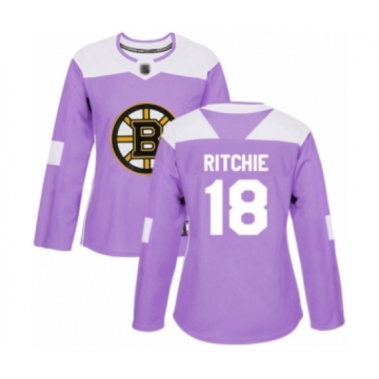 Women's Boston Bruins #18 Brett Ritchie Authentic Purple Fights Cancer Practice Hockey Jersey