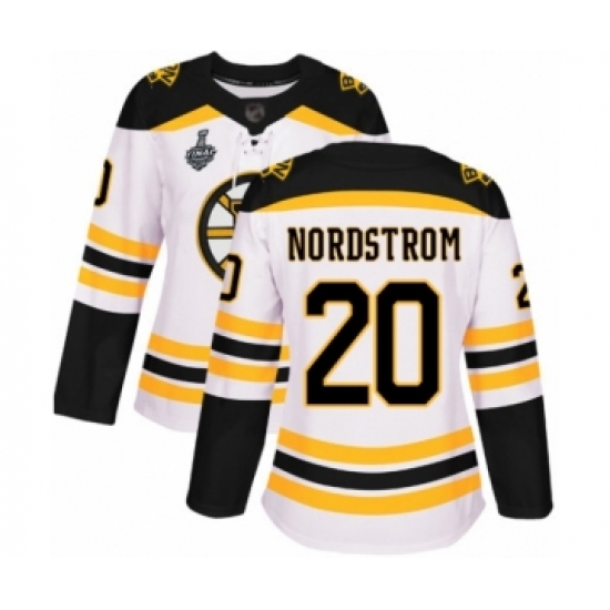>Women's Boston Bruins #20 Joakim Nordstrom Authentic White Away 2019 Stanley Cup Final Bound Hockey Jersey