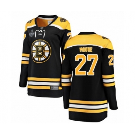 >Women's Boston Bruins #27 John Moore Authentic Black Home Fanatics Branded Breakaway 2019 Stanley Cup Final Bound Hockey Jersey