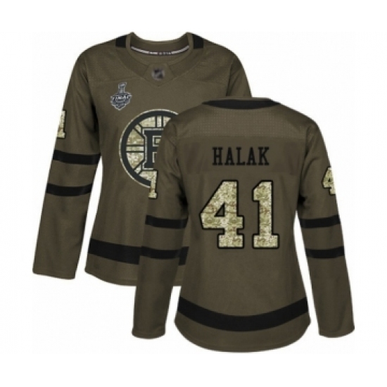 Women's Boston Bruins #41 Jaroslav Halak Authentic Green Salute to Service 2019 Stanley Cup Final Bound Hockey Jersey