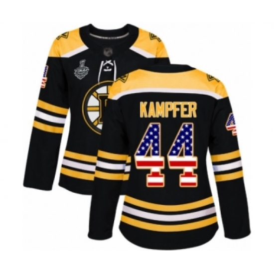 Women's Boston Bruins #44 Steven Kampfer Authentic Black USA Flag Fashion 2019 Stanley Cup Final Bound Hockey Jersey