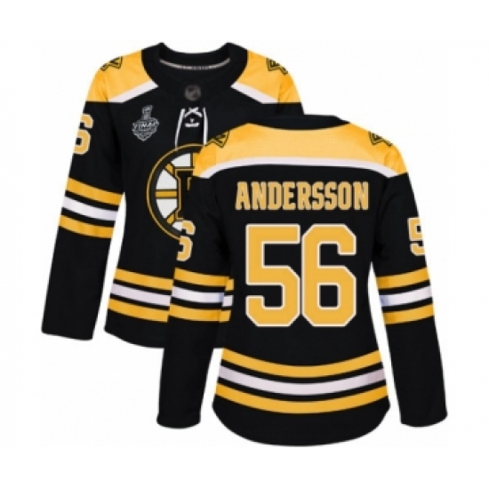 >Women's Boston Bruins #56 Axel Andersson Authentic Black Home 2019 Stanley Cup Final Bound Hockey Jersey