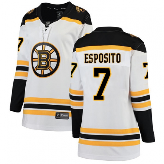 Women's Boston Bruins #7 Phil Esposito Authentic White Away Fanatics Branded Breakaway NHL Jersey