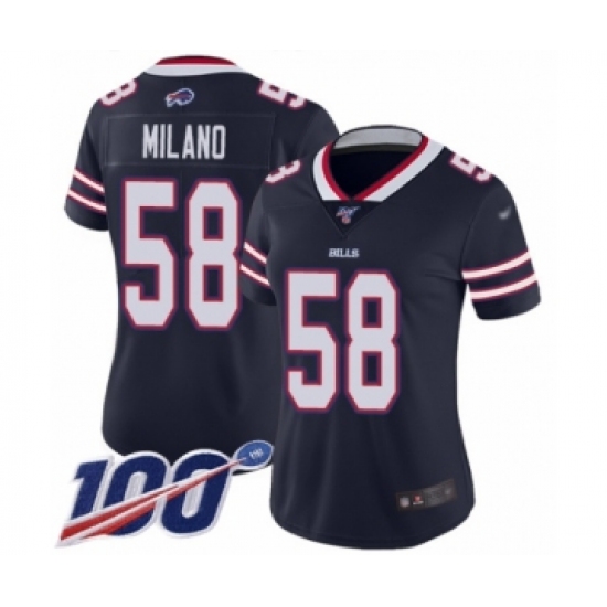 >Women's Buffalo Bills #58 Matt Milano Limited Navy Blue Inverted Legend 100th Season Football Jersey