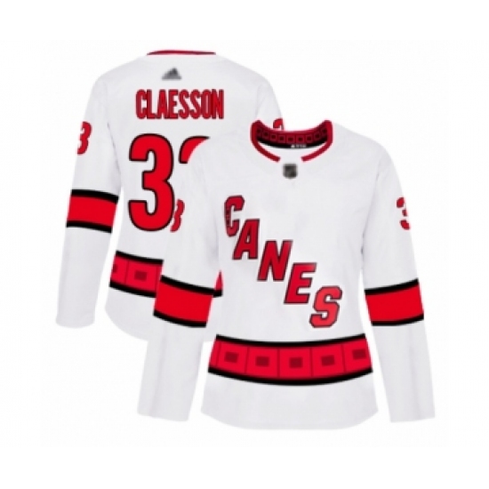 Women's Carolina Hurricanes #33 Fredrik Claesson Authentic White Away Hockey Jersey