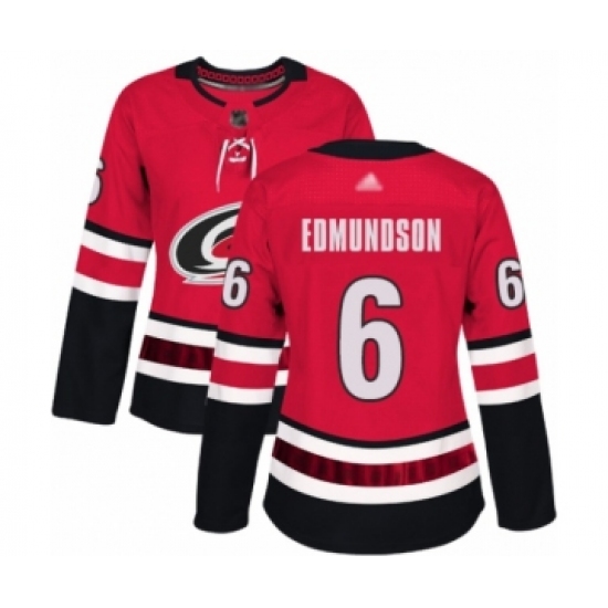 Women's Carolina Hurricanes #6 Joel Edmundson Authentic Red Home Hockey Jersey