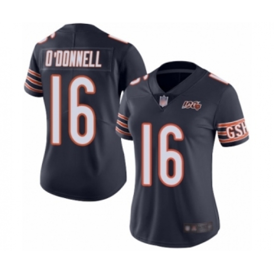 Women's Chicago Bears #16 Pat O'Donnell Navy Blue Team Color 100th Season Limited Football Jersey