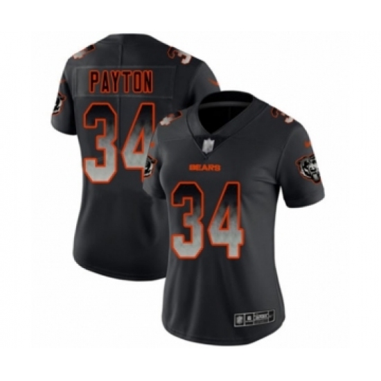 Women's Chicago Bears #34 Walter Payton Limited Black Smoke Fashion Football Jersey