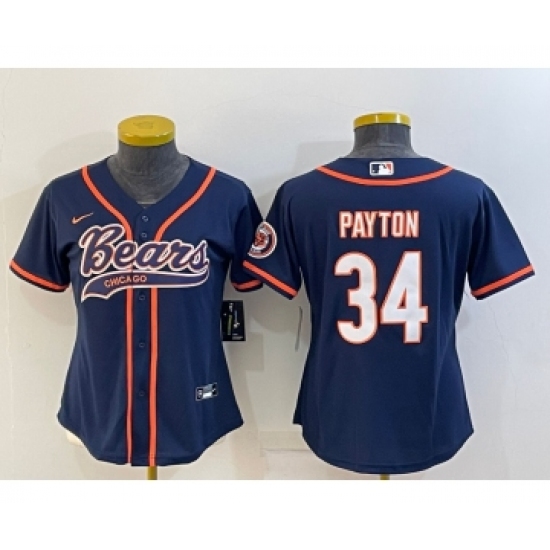 Women's Chicago Bears #34 Walter Payton Navy With Patch Cool Base Stitched Baseball Jersey