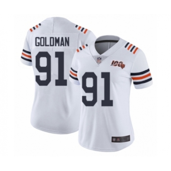 Women's Chicago Bears #91 Eddie Goldman White 100th Season Limited Football Jersey
