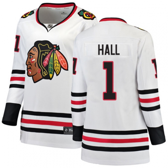 Home>NHL>Chicago Blackhawks>Glenn Hall>Women's Chicago Blackhawks #1 Glenn Hall Authentic White Away Fanatics Branded Breakaway NHL Jersey