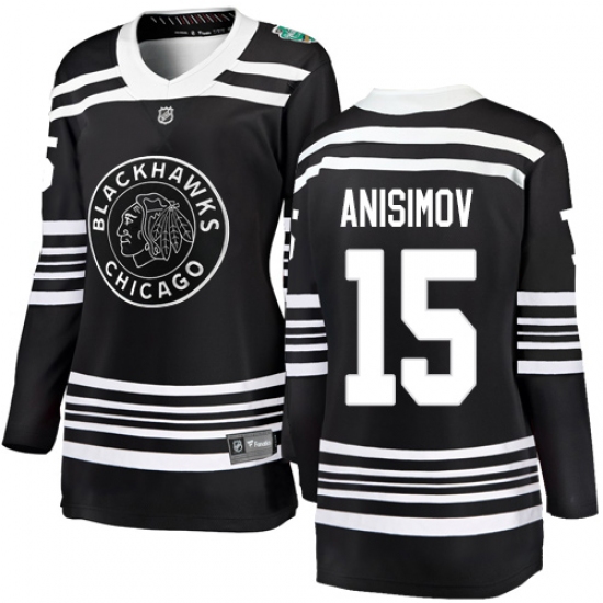 >Women's Chicago Blackhawks #15 Artem Anisimov Black 2019 Winter Classic Fanatics Branded Breakaway NHL Jersey