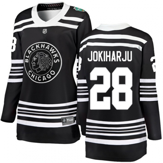 >Women's Chicago Blackhawks #28 Henri Jokiharju Black 2019 Winter Classic Fanatics Branded Breakaway NHL Jersey