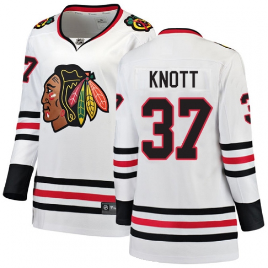 Home>NHL>Chicago Blackhawks>Graham Knott>Women's Chicago Blackhawks #37 Graham Knott Authentic White Away Fanatics Branded Breakaway NHL Jersey